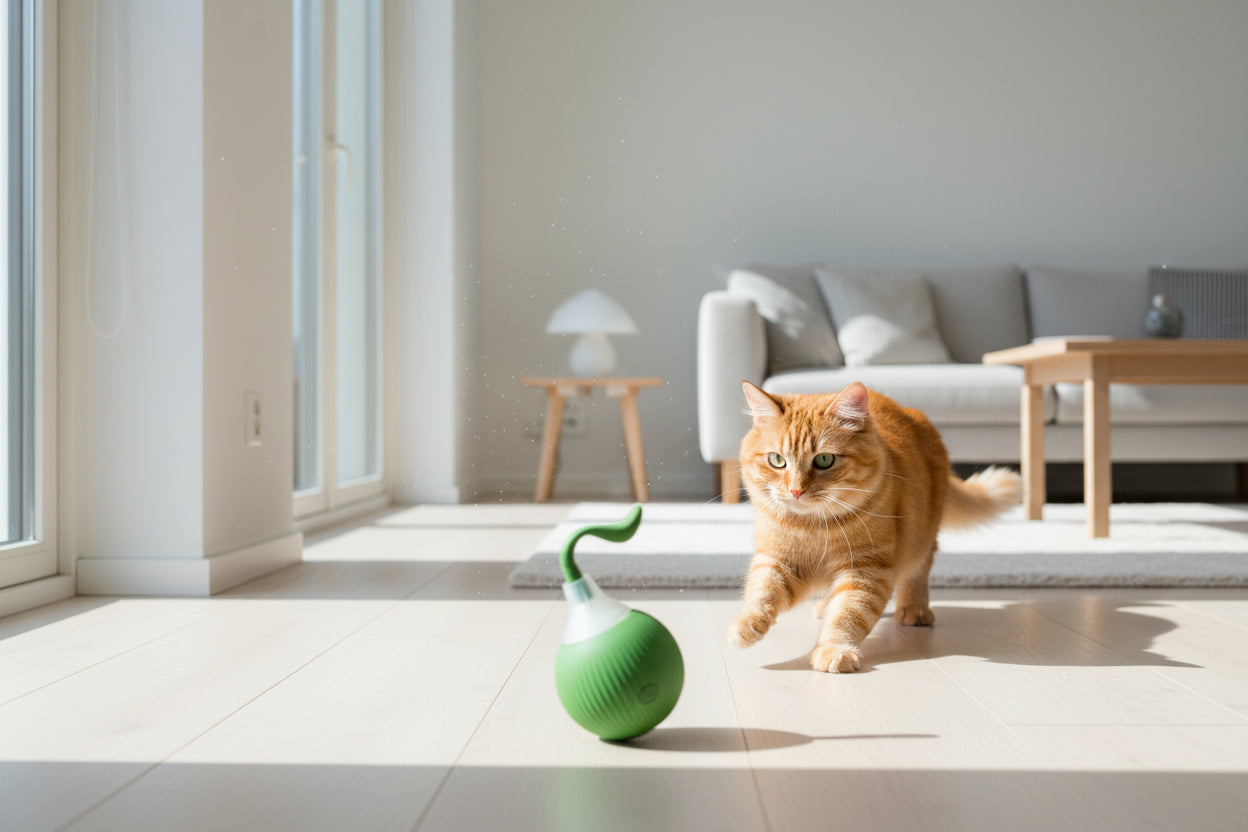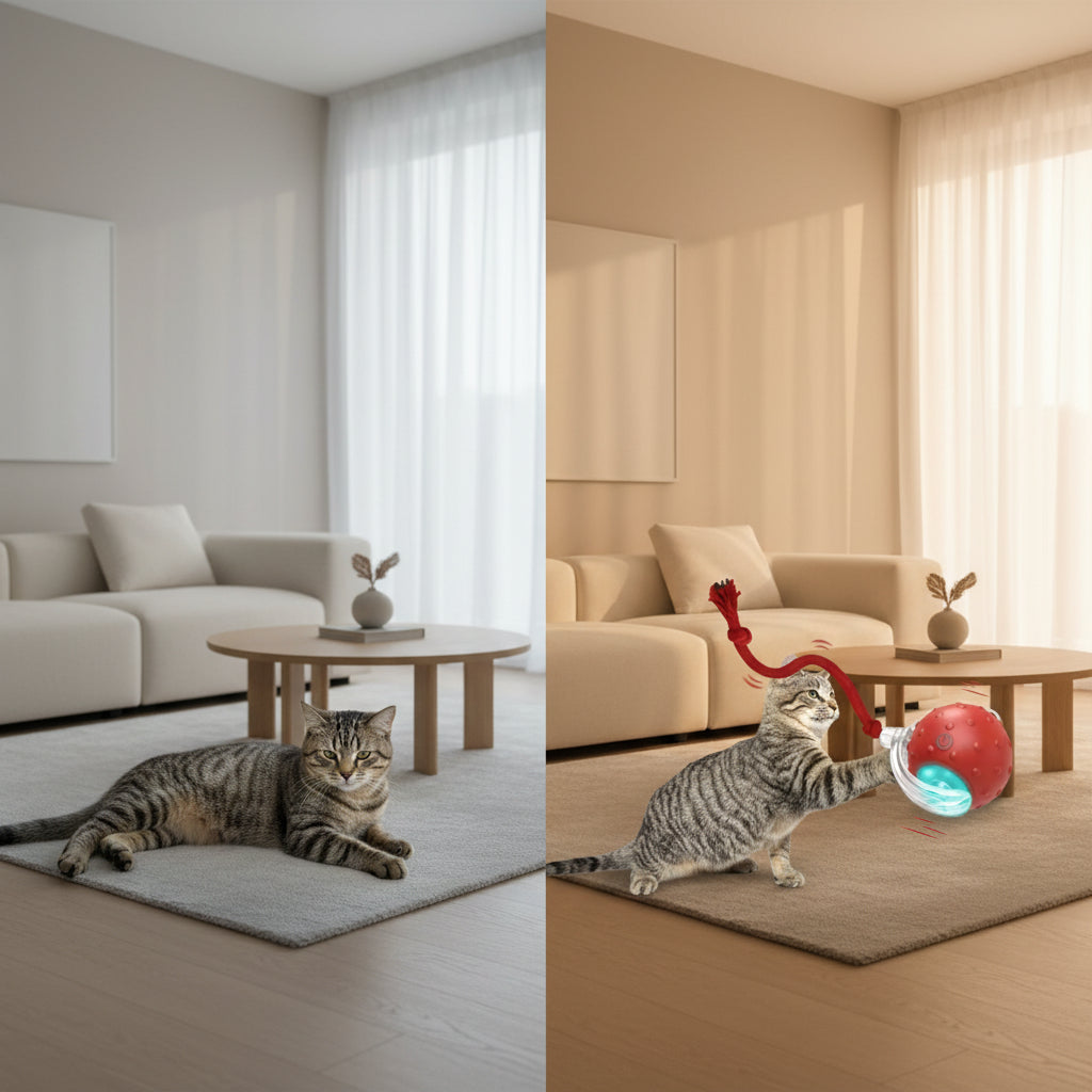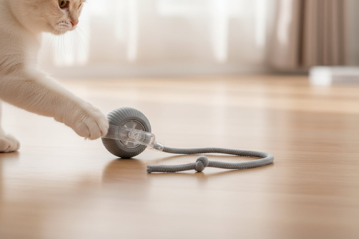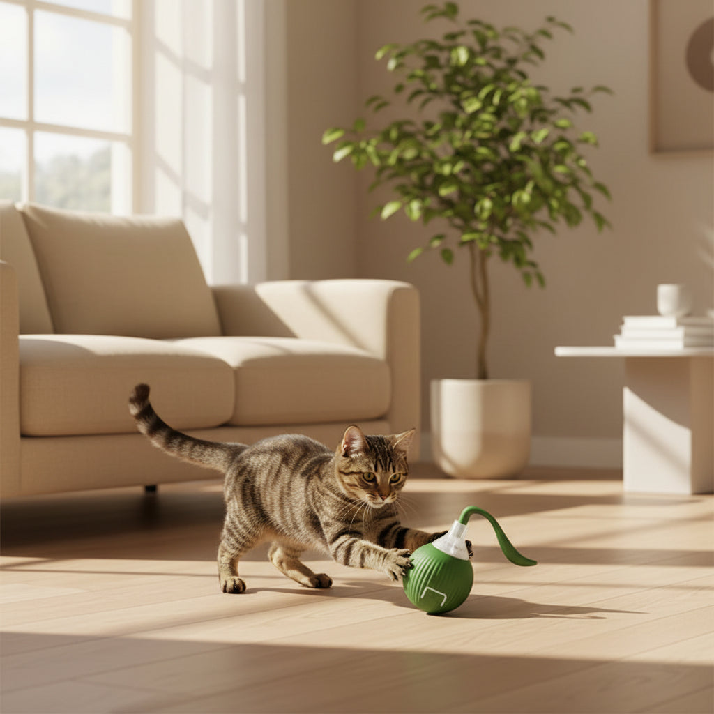 Abbiamo progettato il motore per essere ultra-silenzioso. Il leggero ronzio e la luce soffusa sono studiati per incuriosire il gatto e stimolare il suo istinto di caccia senza causare stress o paura